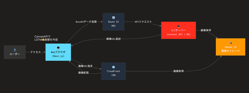 - フロントエンド(Canvas API)で画像生成