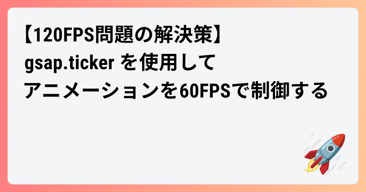 「このデバイスだけアニメーションが速いんだけど...」と指摘された際には、この問題を疑ってみてください。皆さんもぜひgsap.tickerを使用してシンプルにアニメーションのFPSを管理しましょう。
